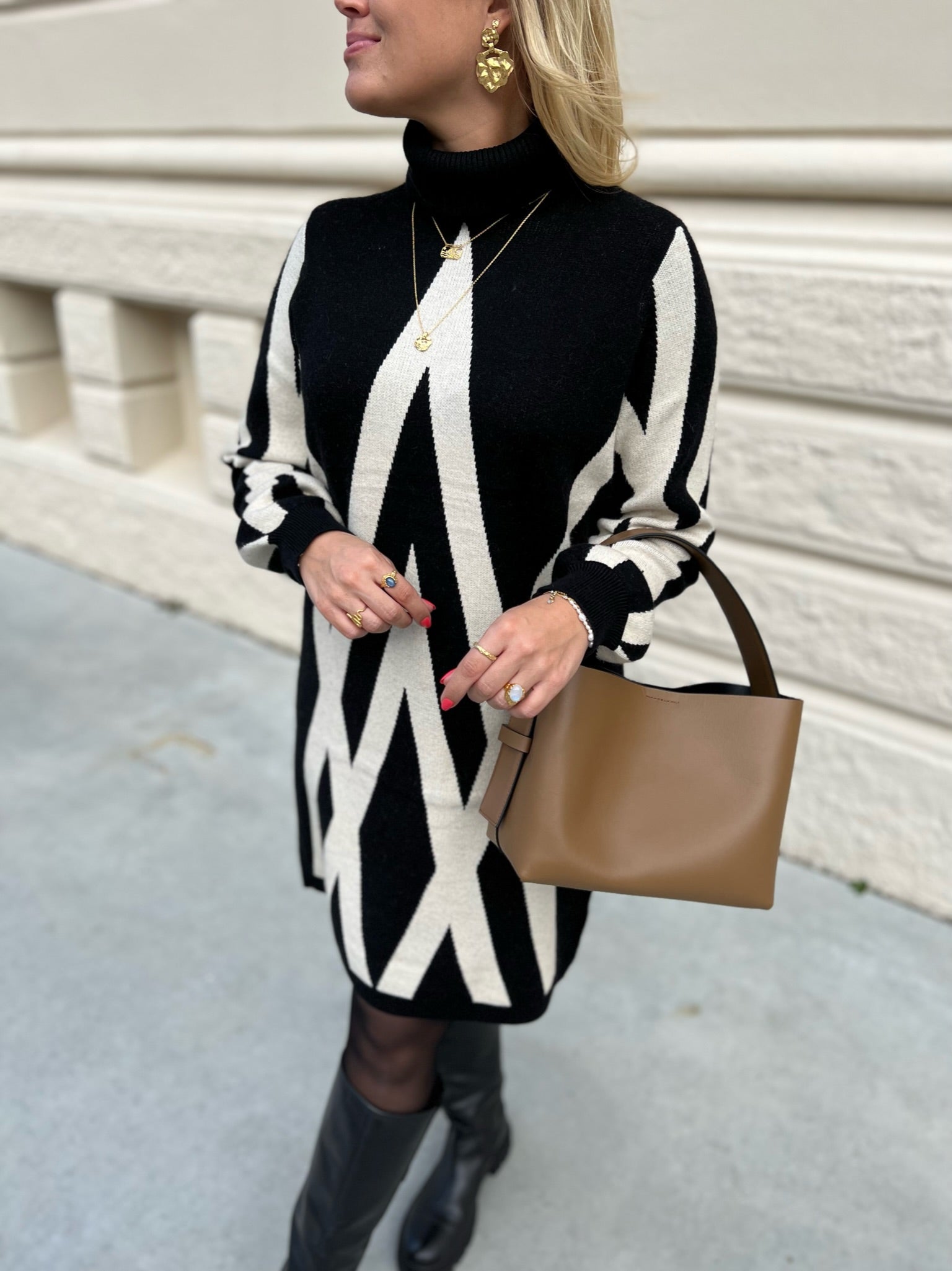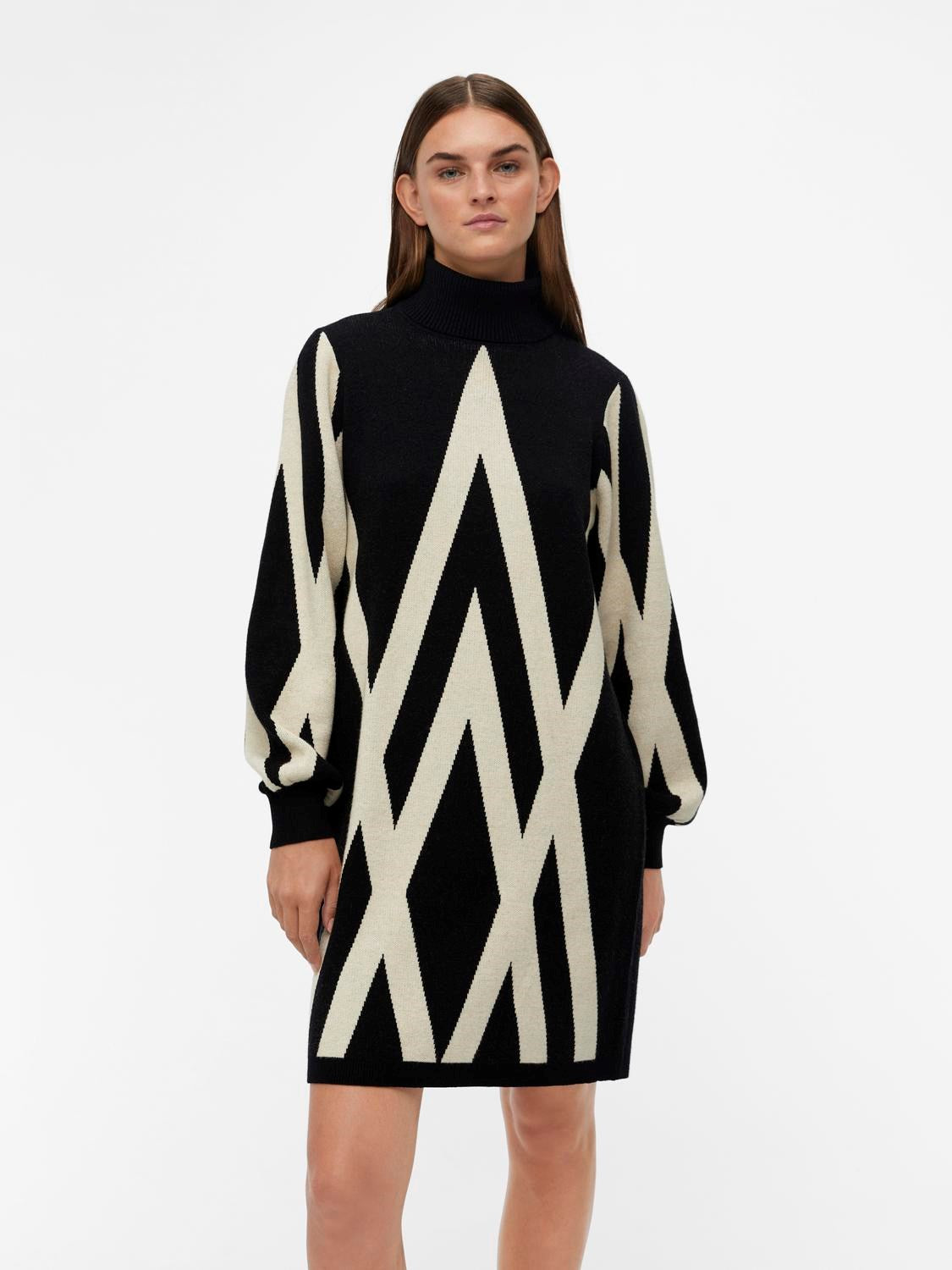 Super fin strikkjole fra Object. Kjolen har lange ærmer, rullekrave ved halsen og går til lige under knæet. Derudover har den en lige pasform med ribkanter ved halsen og ved ærmerne.