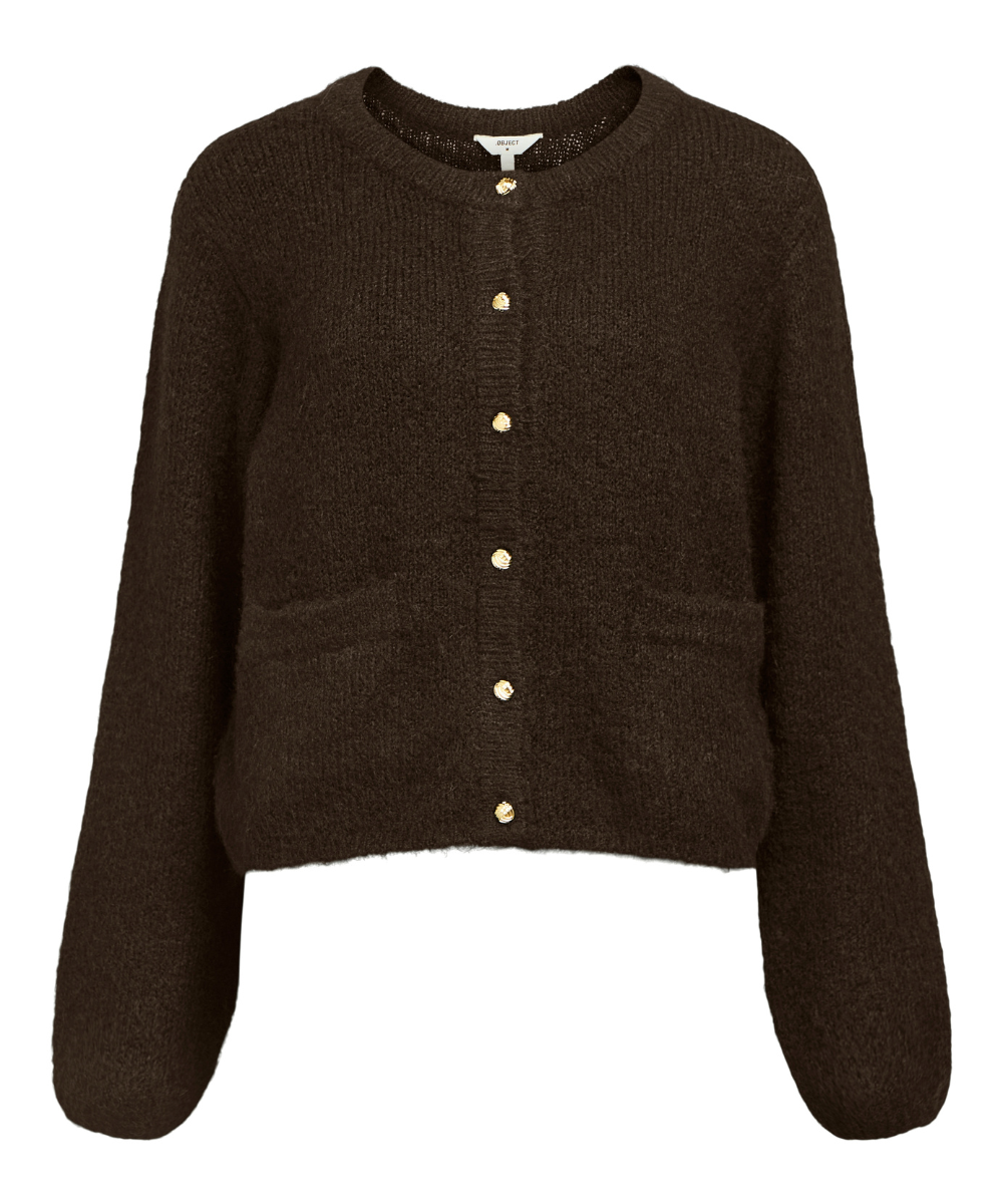 Saggia LS Knit Cardigan Seal Brown Melange fra Object