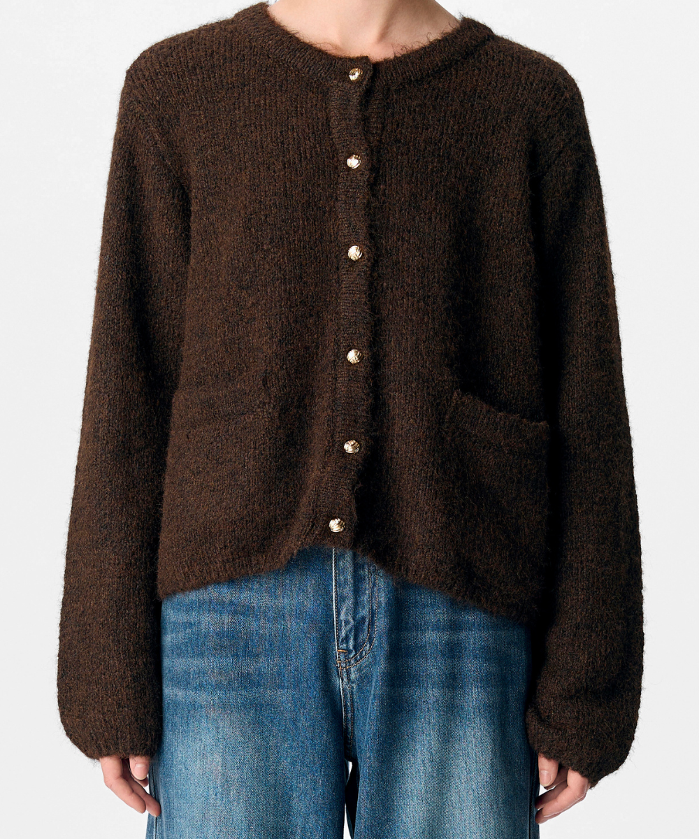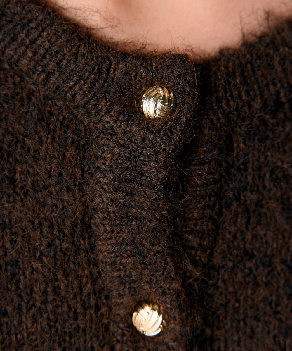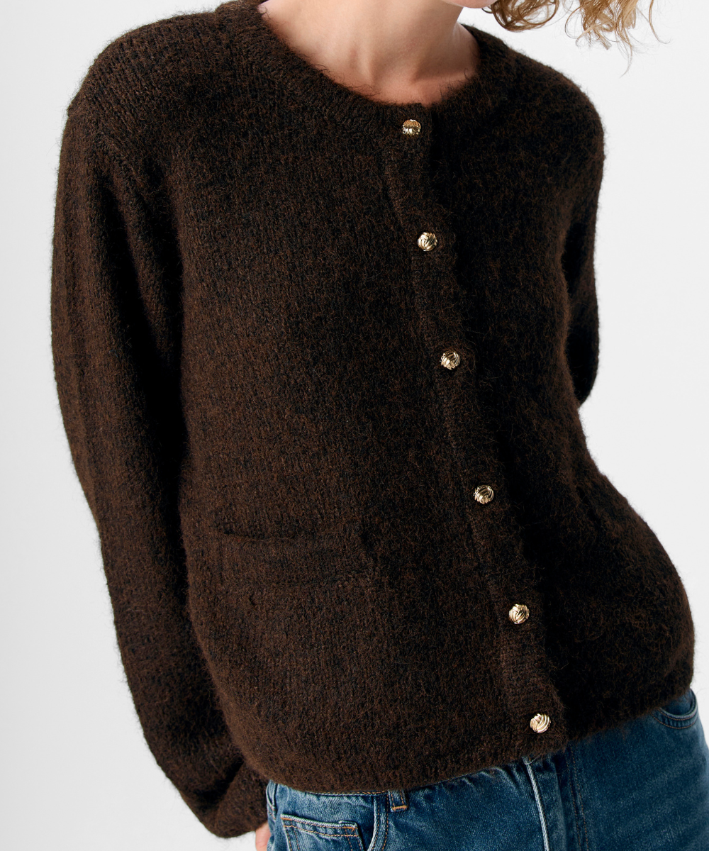 Object Saggia LS Knit Cardigan Seal Brown Melange