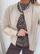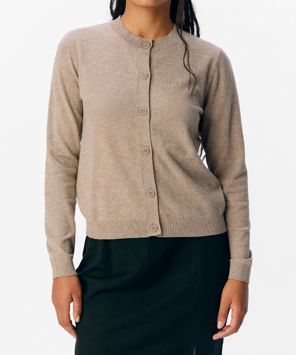 Object Thess LS Short Cardigan Desert Taupe Melange NO25