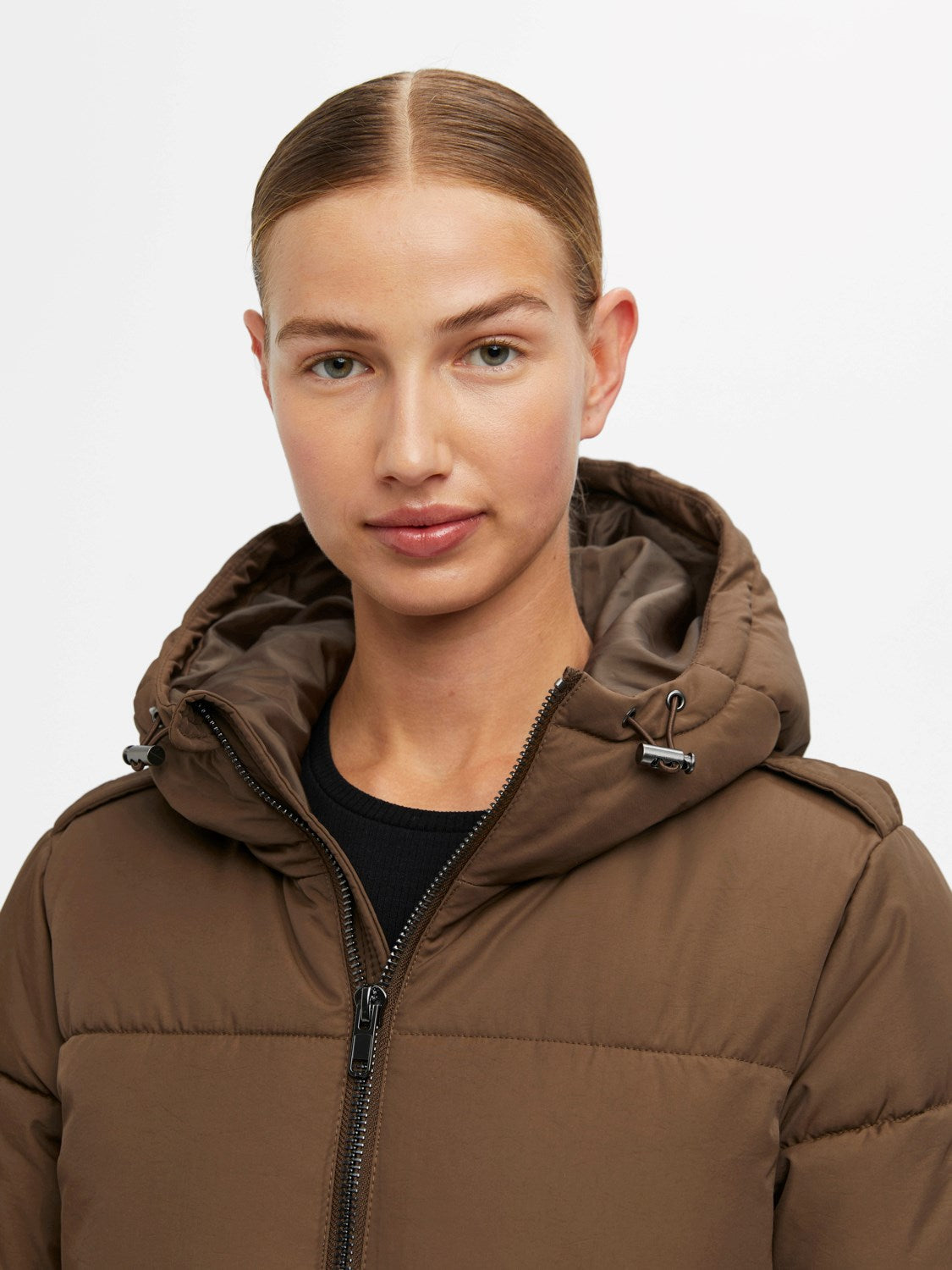 Zhanna fra Object er en lækker dunjakke, som er perfekt til vinteren. Jakken er udstyret med 2-vejs lynlåslukning, en stor hætte med justerbare snørre samt ribkant ved ærmet. Ydermere har jakken store lommer foran med trykknapper.