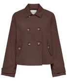 Super fin kort trenchcoat i en brun farve med fine detaljer. Jakken har seks knapper fortil, to lommer i siden samt knappedetalje på ærmet.