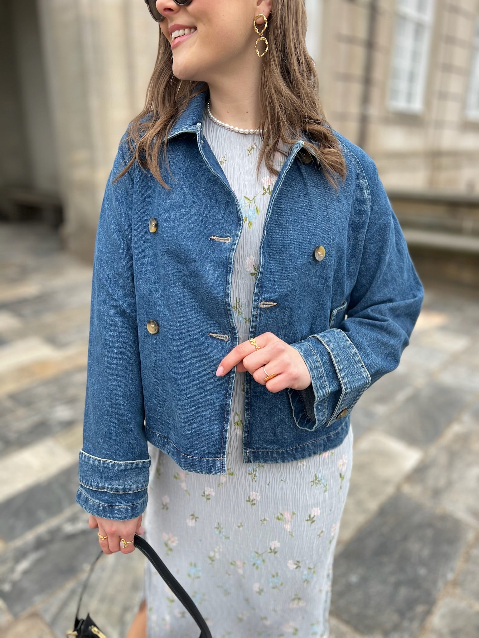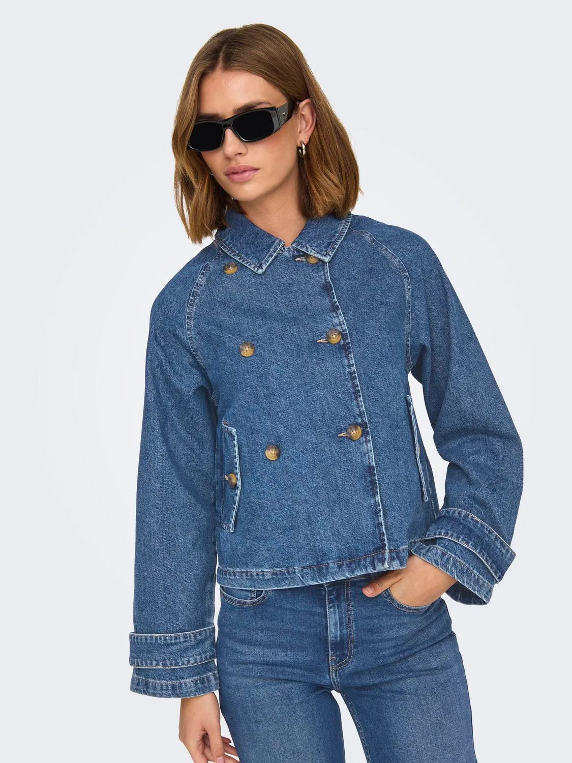 Only April Short DNM Trench Jakke Medium Blue Denim NOS25