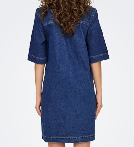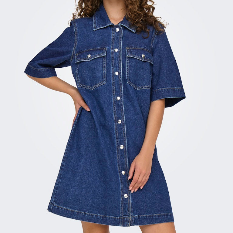Only Belle SS Button Kjole Dark Blue Denim NO25