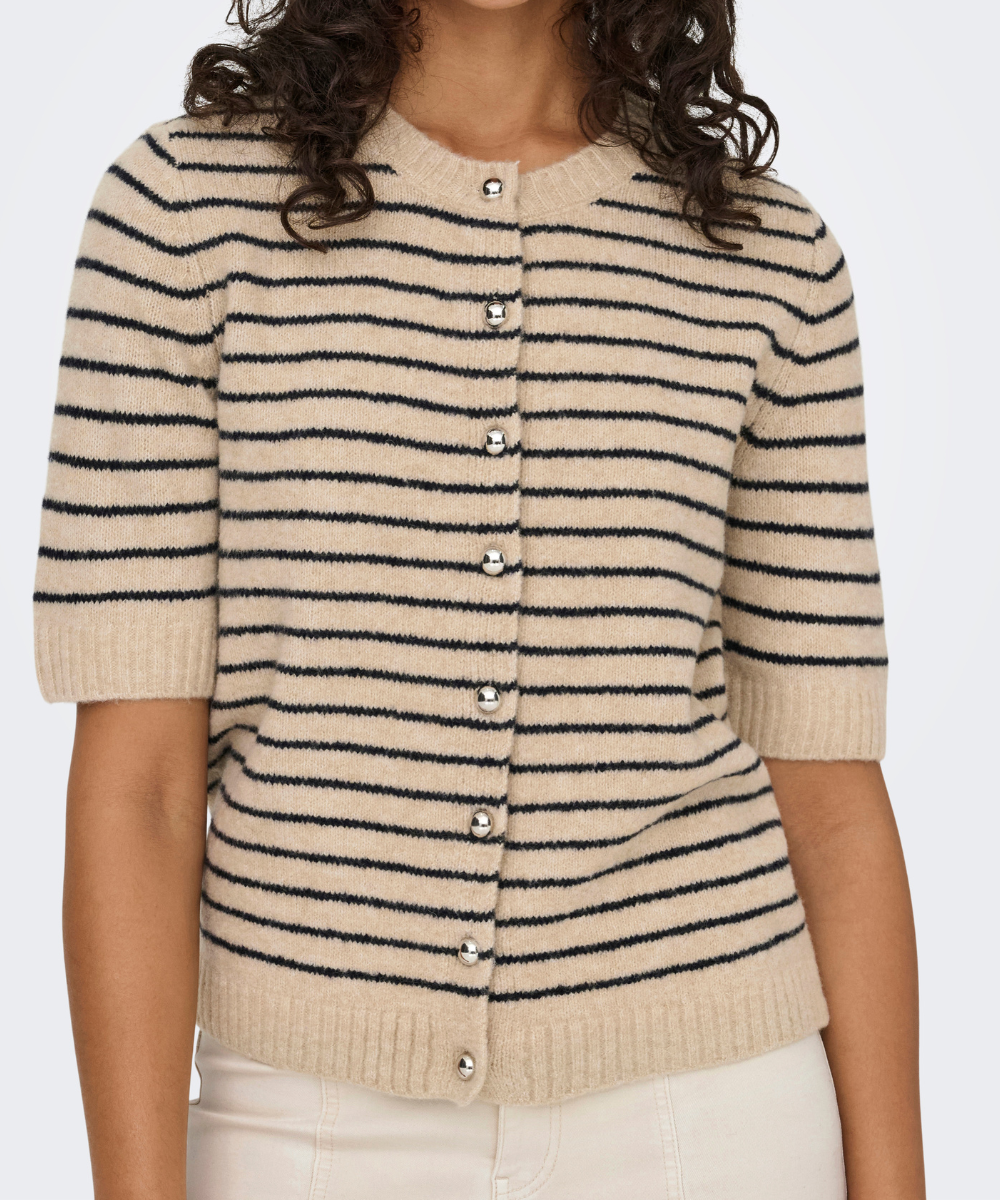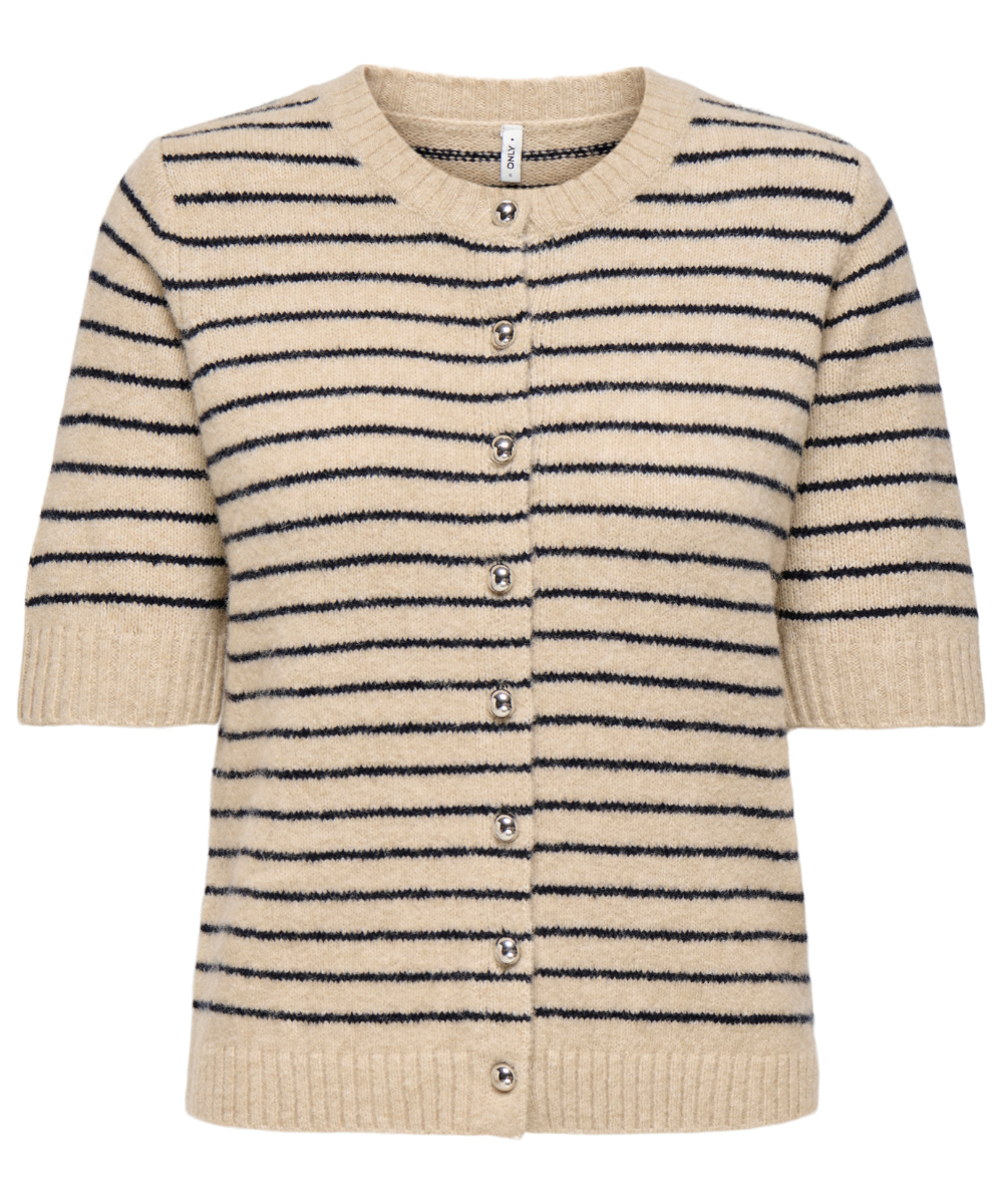 Chester Life SS Stripe Cardigan Humus/Night Sky fra Only