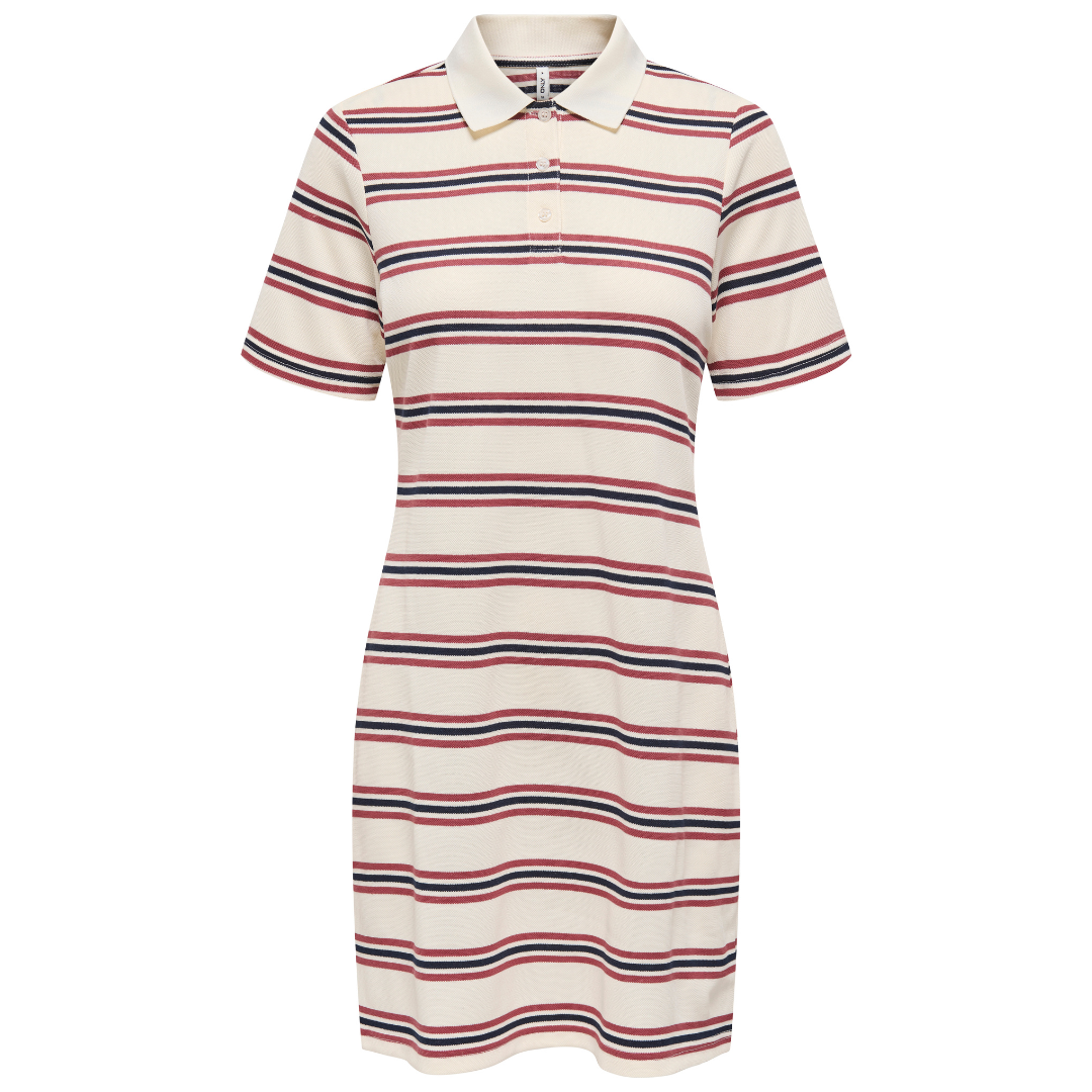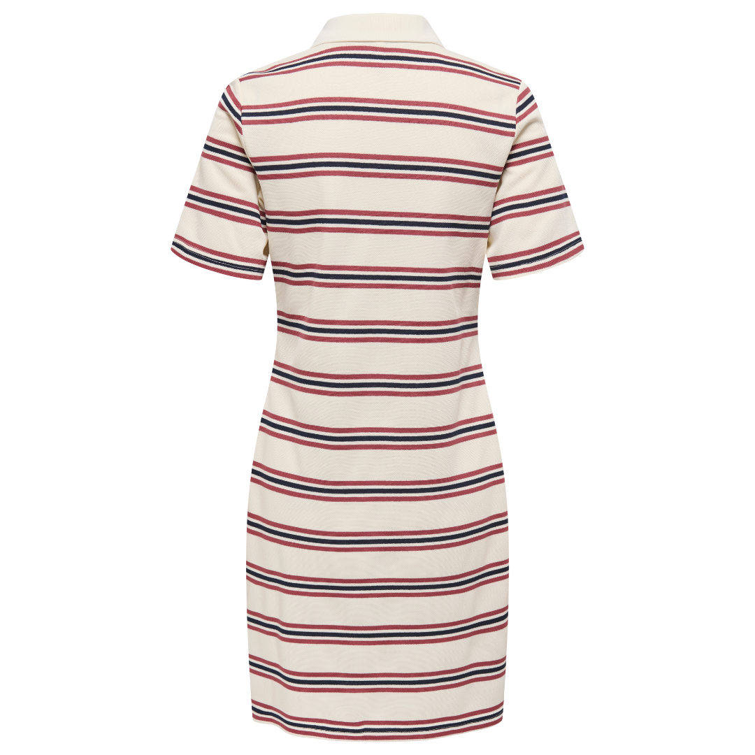 Only Evie SS Polo Kjole Antique White/Navy Blazer/Ruby Wine