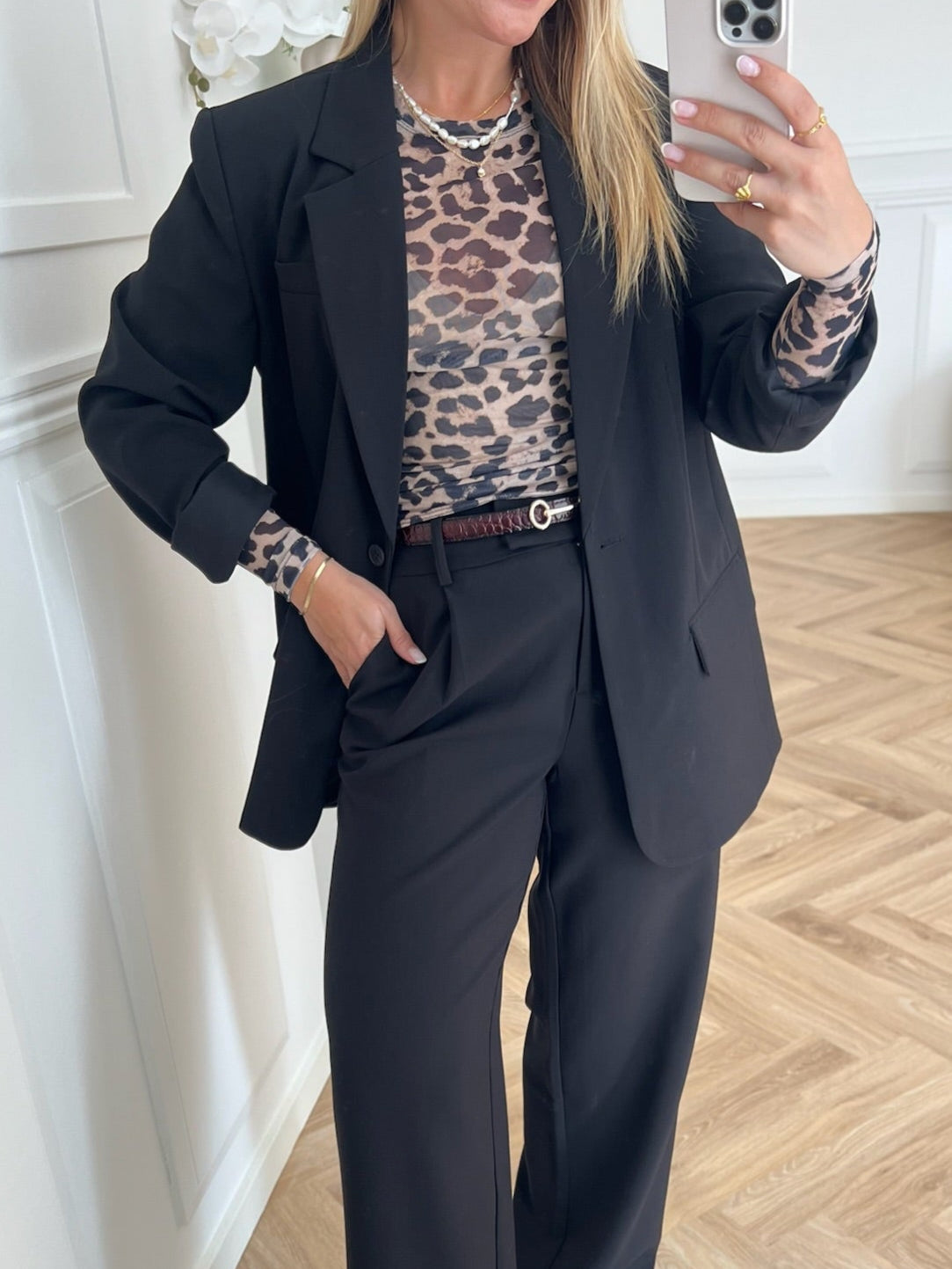 Vores model er iført str. 38/32 og hun er 165 cm høj