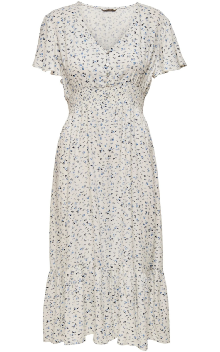 Only Marianne Life SS Midi Kjole Cloud Dancer/Blue Ditsy