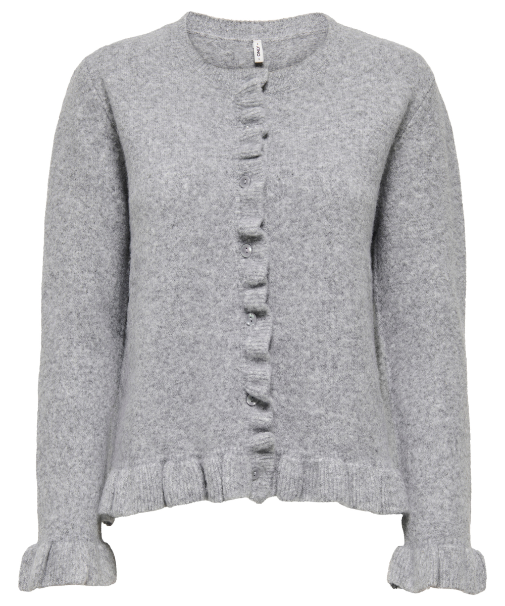 Only Rima Life LS Frill Button Cardigan Light Grey Melange