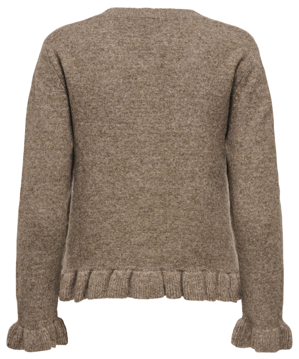 Only Rima Life LS Frill Button Cardigan Walnut Melange