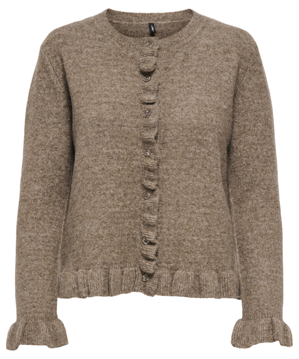 Rima Life LS Frill Button Cardigan Walnut Melange fra Only