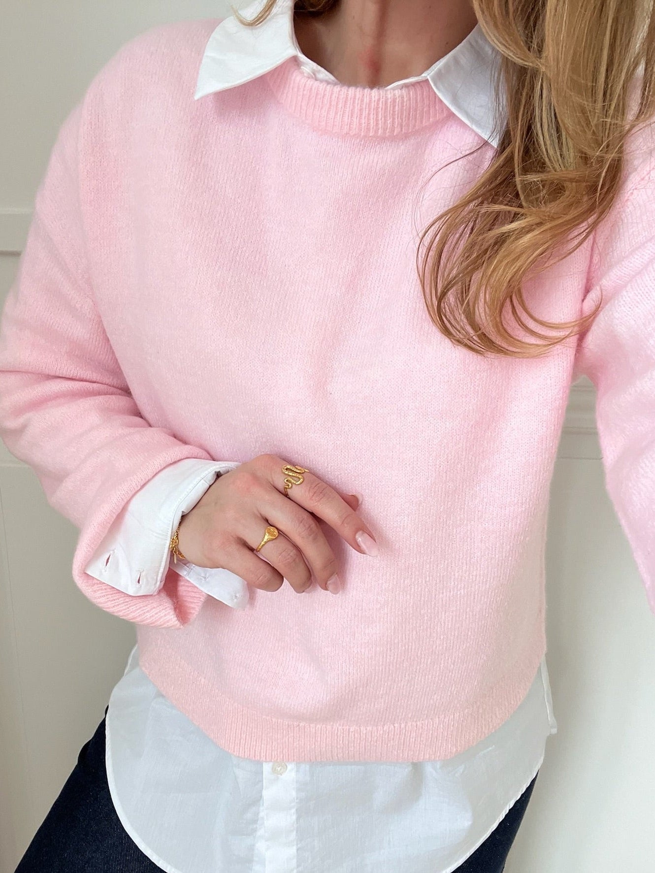 Denne strik med rund hals og lange rummelige ærmer er designet til at give en behagelig og afslappet pasform, hvilket sikrer både blødhed og bevægelsesfrihed. De ribstrikkede ærmekanter bidrager med ekstra komfort og et stilrent finish.