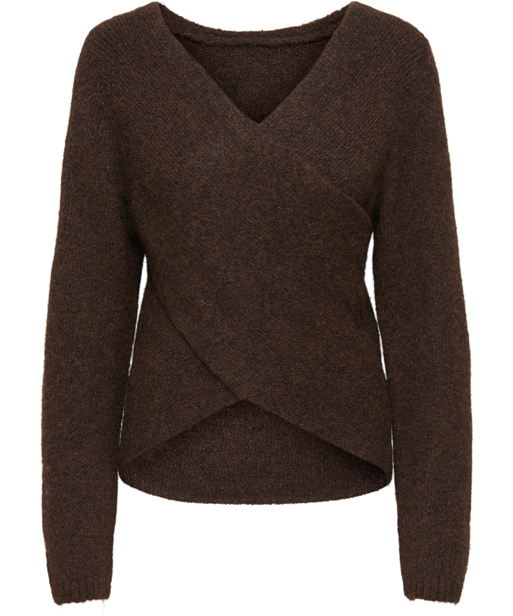 Zaggie Life LS V-Neck Reversible Strik Seal Brown fra Only