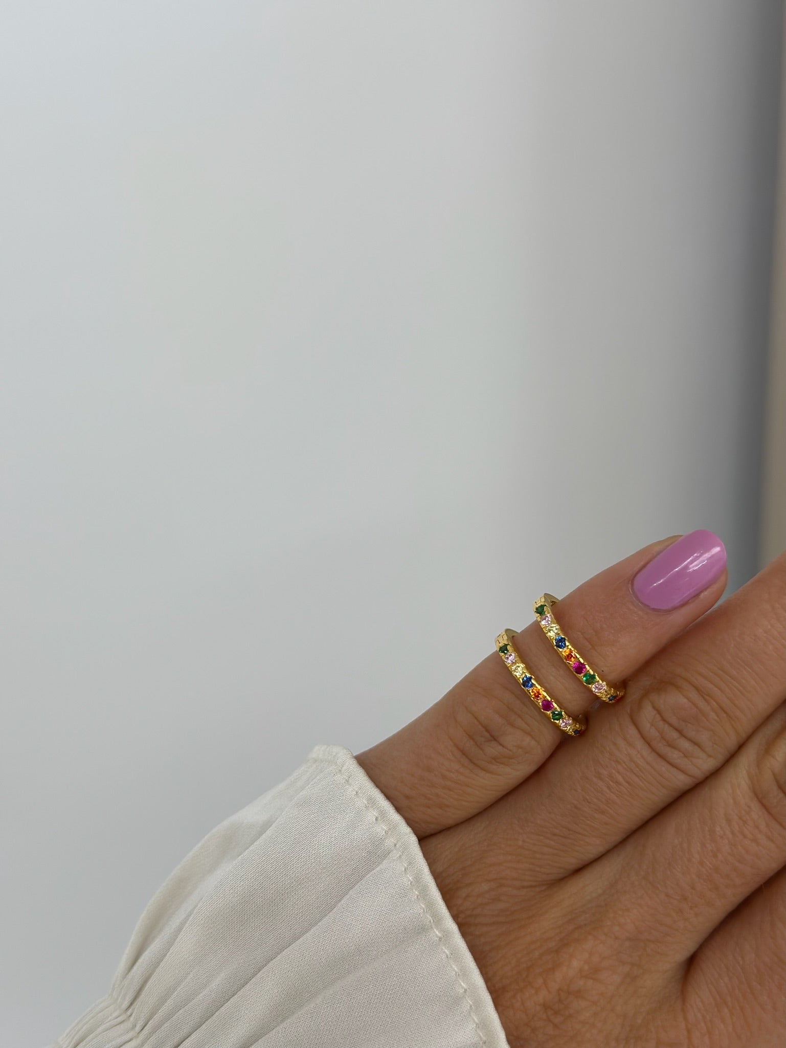 Smuk og simpel ring med flerfarvede zirkoner. Pari er en meget enkel ring med et fint udtryk. Den kan ideelt sammensættes med andre ringe for at skabe et personligt og feminint udtryk. Pari Ringen passer desuden perfekt med Nubia Øreringene.