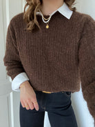 Cleo LS O-Neck Chunky Strik Hot Fudge NOA25 fra Pieces