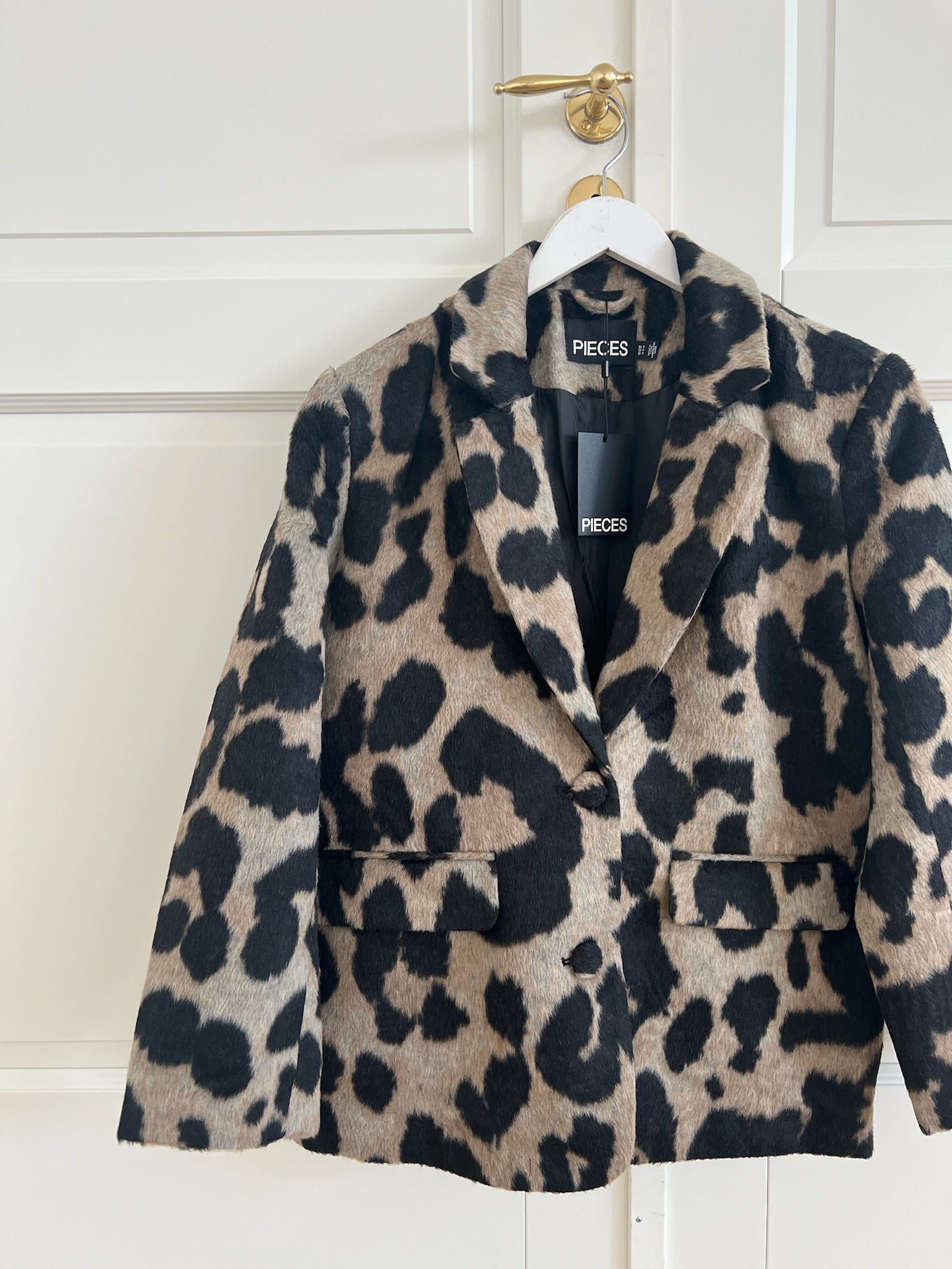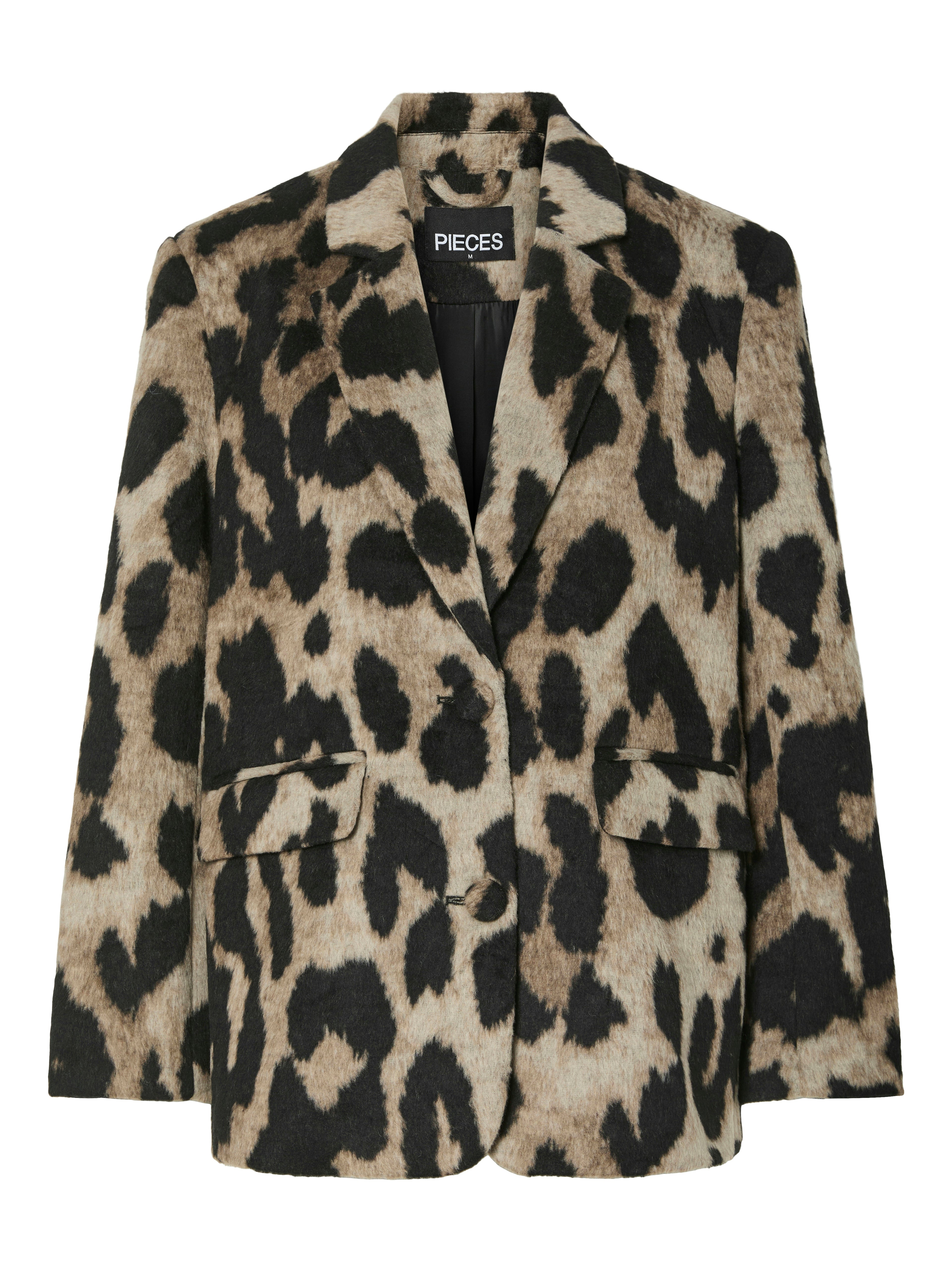 Demi LS Loose Blazer Black/Leo fra Pieces