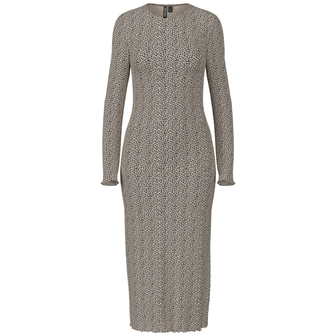 Pieces Flora LS Midi Kjole Natural Leo NOS25