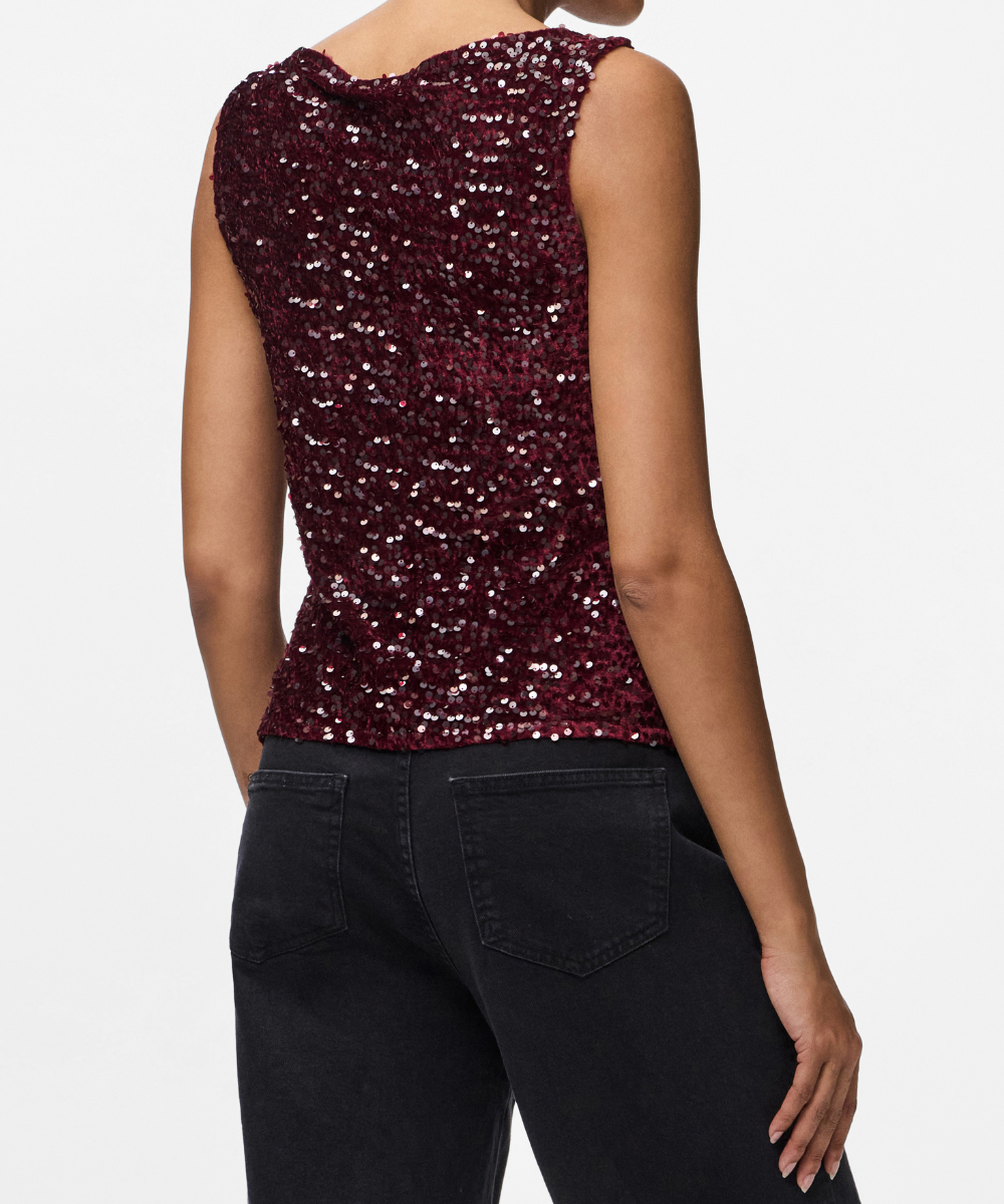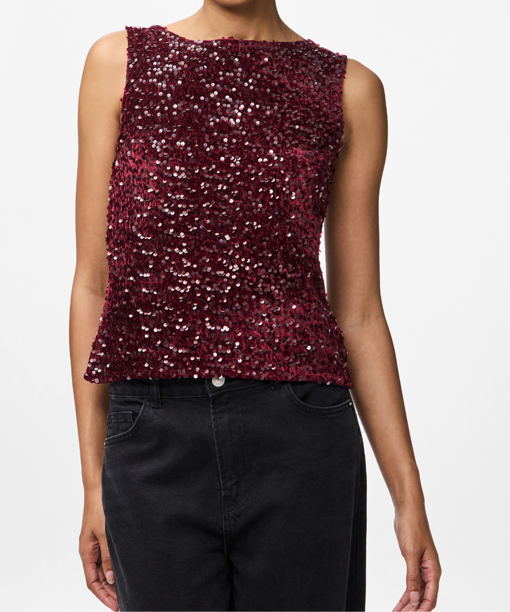 Kam Tank Top Tawny Port Sequins fra Pieces