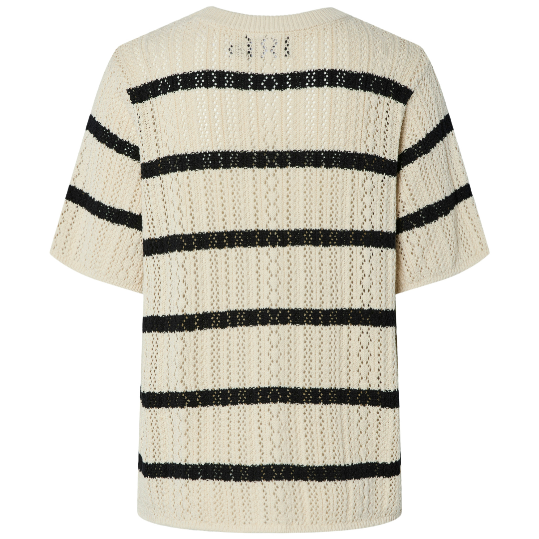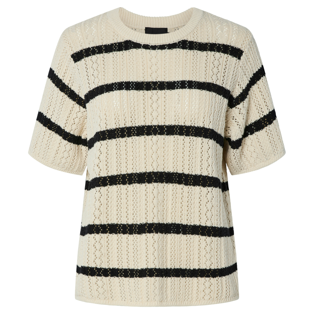 Nuka SS O-Neck Strik Birch Stripes/Black fra Pieces