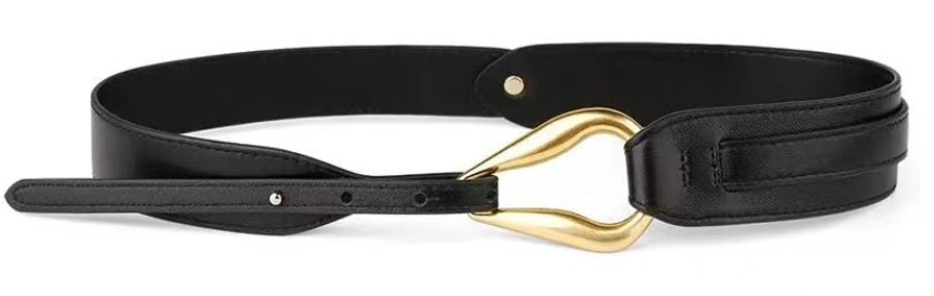 Fint taljebælte fra Plissé Copenhagen i ko skind og en mat messing spænde. Style det i taljen udenover en blazer.