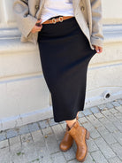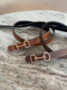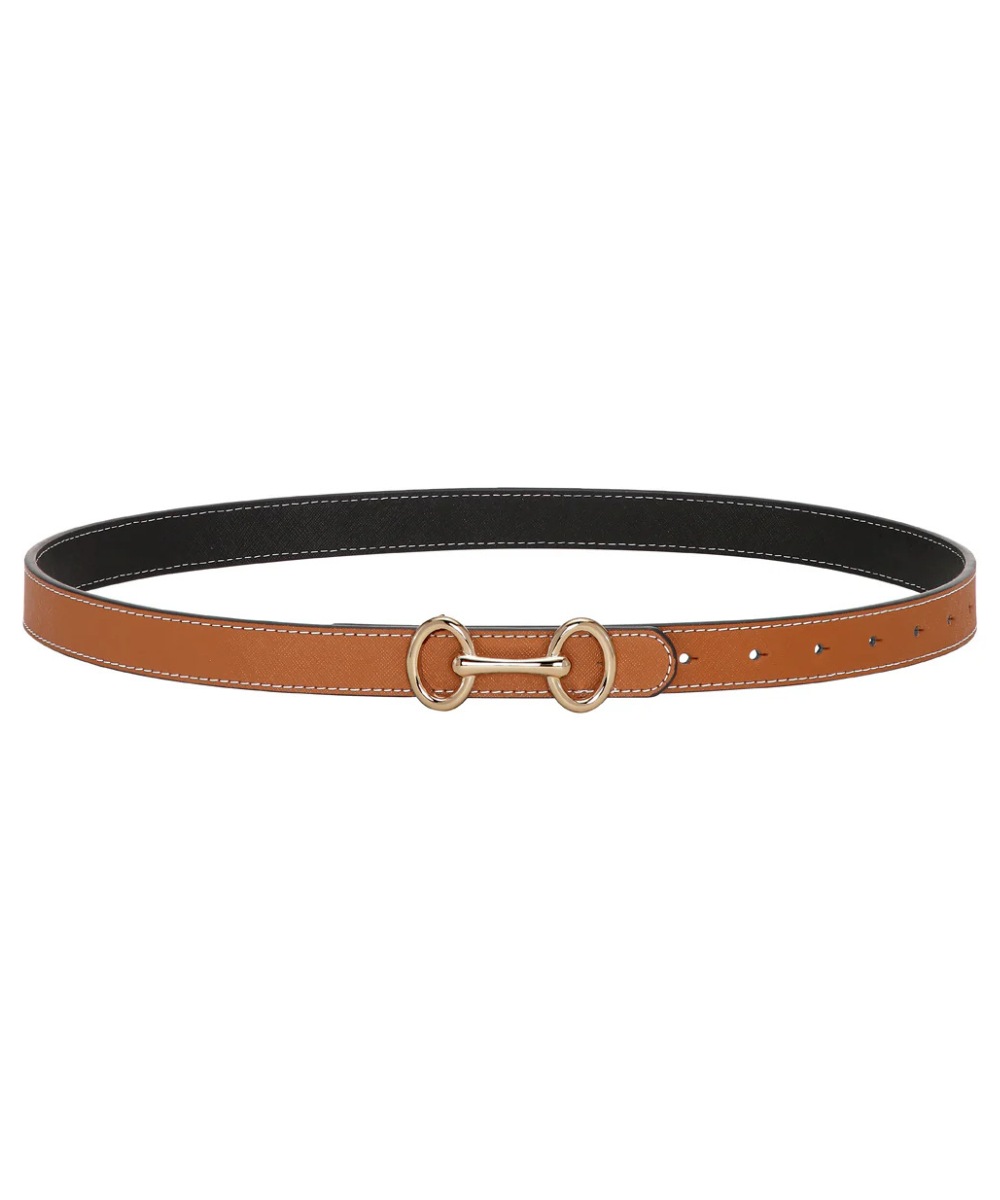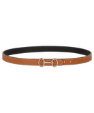 Smukt bælte i skind. Bæltet har en vendbar funktion, således bæltet udadtil kan være enten sort eller en varm brun farve.