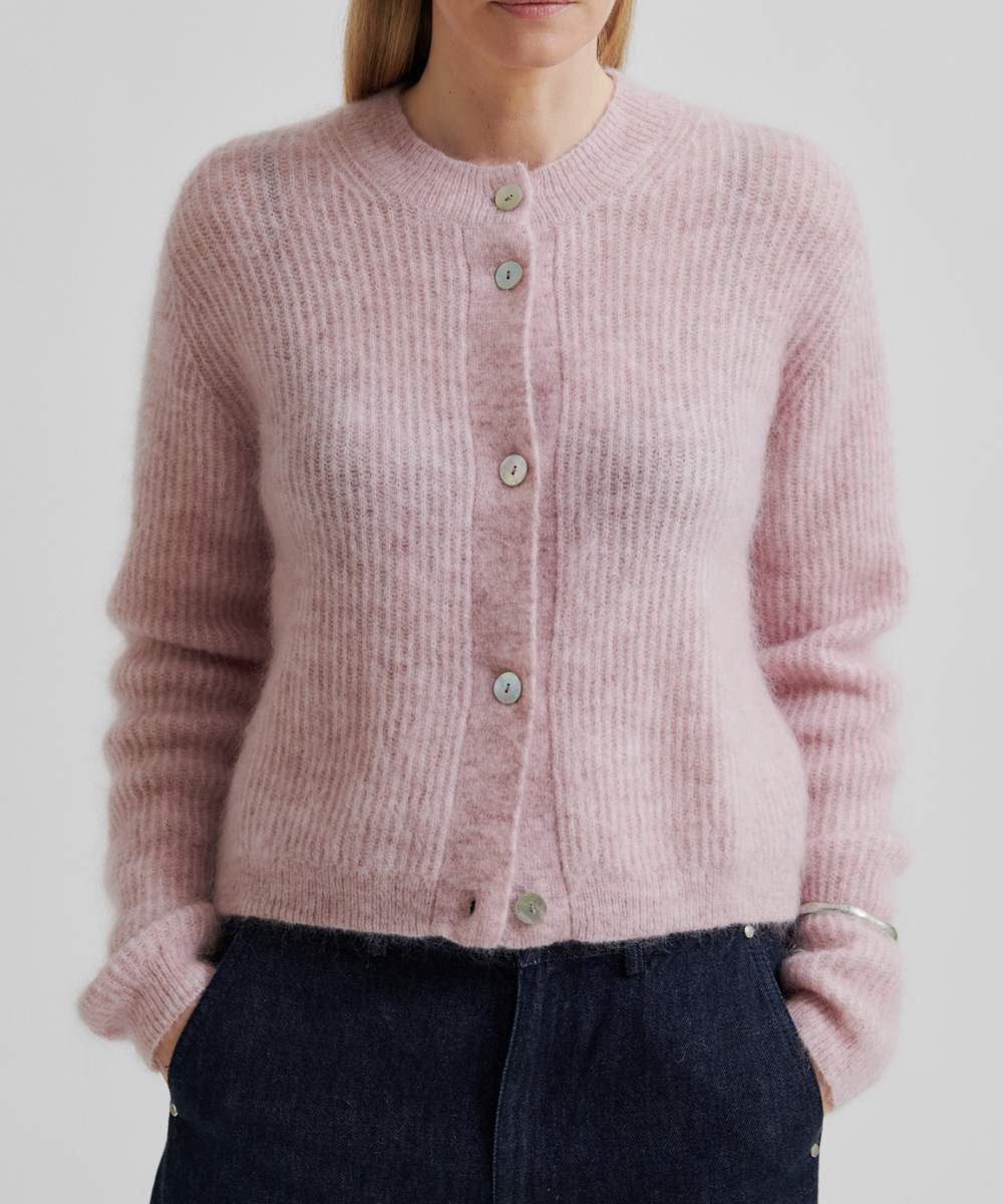 Andrea Knit Rib LS Cardigan Sepia Rose fra Second Female