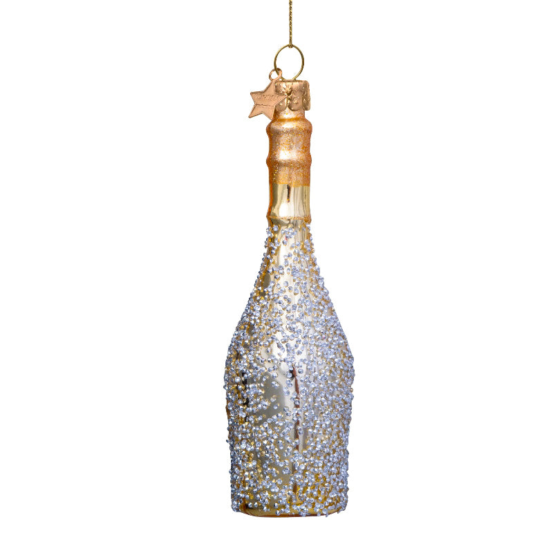 Glas Ornament Bottles w/ Diamonds Gold Champagne fra Vondels