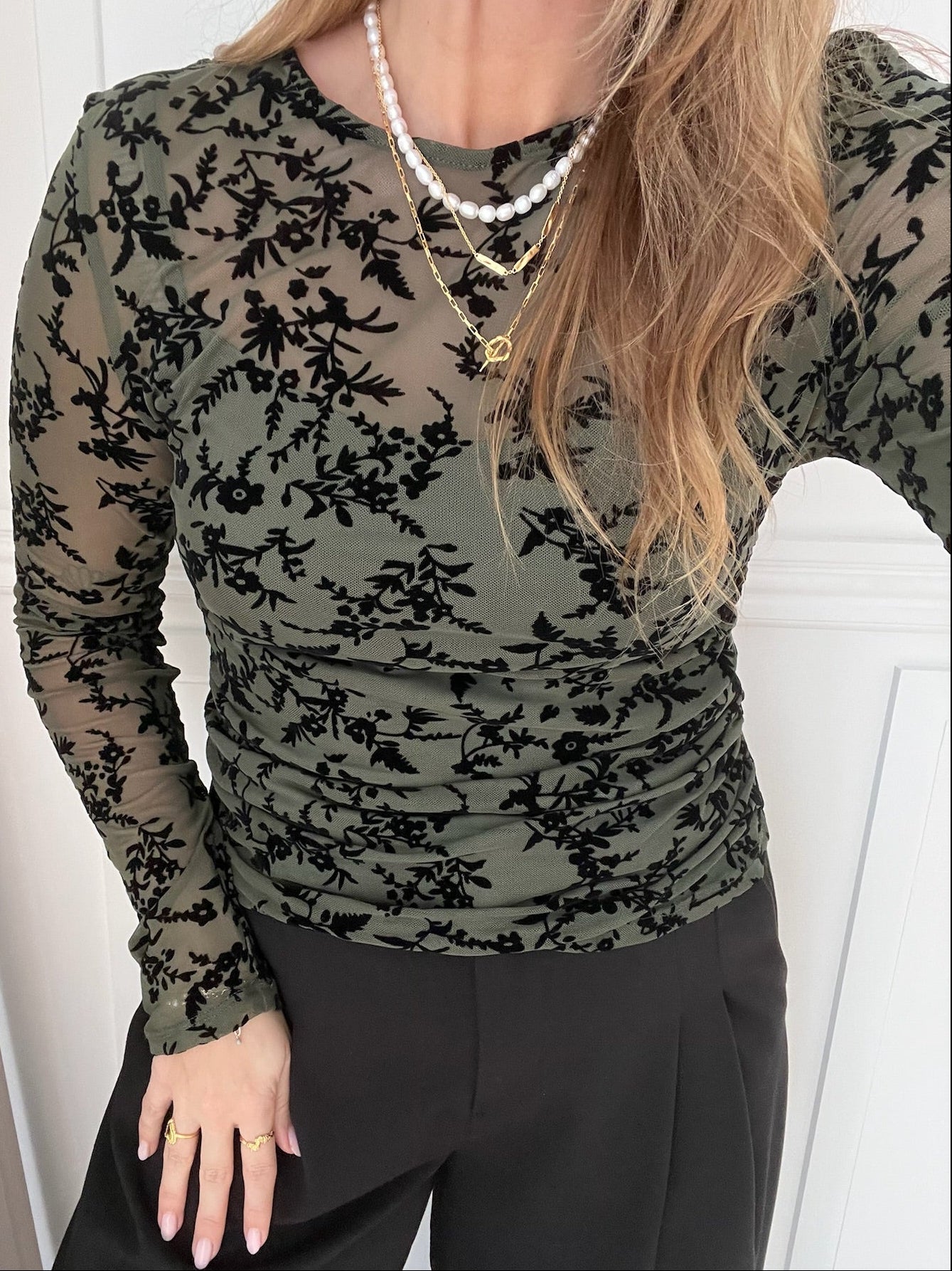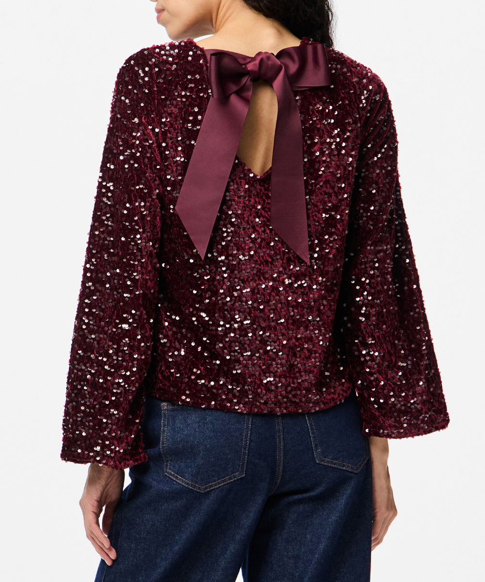 Pieces Kam LS Deep Back Bow Top Tawny Port NOA25